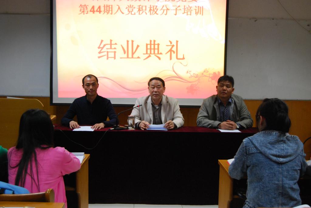 4月20日晚七点,永利3044noc在科学会堂A710举办第44期入党积极分子培训班结业典礼。公司党委书记王成喜,公司党委副书记、学工组组长张珂,院团委书记陈立记及全体入党积极分子参加了这次结业典礼。典礼由陈立记老师主持。