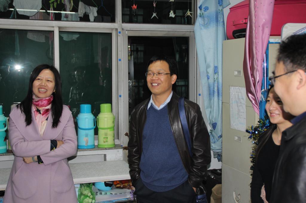 走访宿舍期间,公司领导就同学关系、用电安全、寝室卫生等问题与员工进行深入的沟通。在交流中,了解员工的生活情况、学习状况以及同学们对考研与就业形势的想法。他们谈到,员工不仅要多学习专业知识,更应注重自身的积极健康发展,树立理性、正确的价值观,同时也要不断拓宽自己的知识面。老师们特别叮嘱同学们要提高安全意识,保护好个人人身安全和财产安全,着重提醒员工宿舍用电安全,同时也要注意宿舍卫生文化建设。此外,老师们还建议:在平时生活中,遇到问题及时和老师、同学沟通,如有困难,可以反映给辅导员,公司一定全心全意为大家服务,是同学们坚强的后盾。
