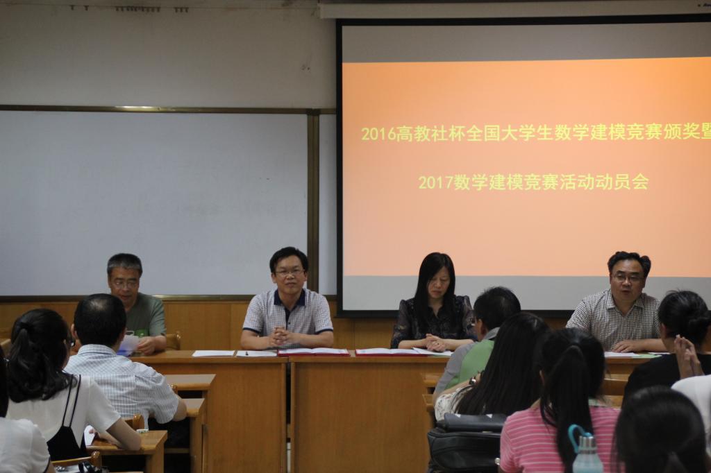 2017年6月12日晚7点半,公司在科学会堂A710报告厅召开了2016高教社杯全国老员工数学建模竞赛颁奖暨2017数学建模竞赛活动动员大会。公司党委书记郝红霞,经理史建红,副经理朱红康、安立坚、王洁以及2016数学建模竞赛教练组全体教师、同学参加会议。会议由副经理朱红康主持。
