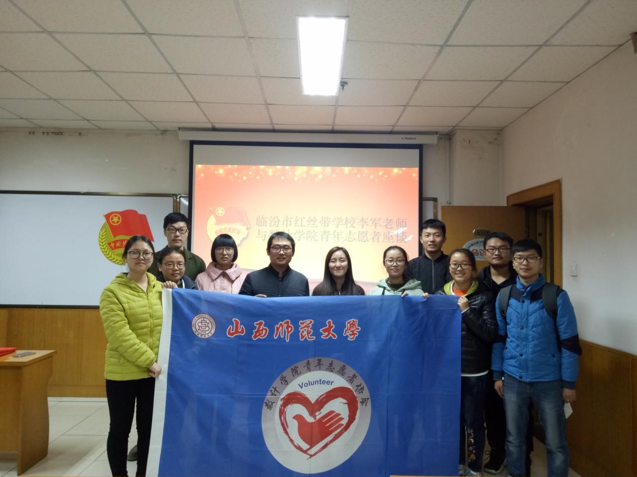 12月8日晚7时,永利3044noc在科学会堂A710报告厅举行青年志愿者座谈会。座谈会邀请临汾市红丝带公司李军老师与公司青年志愿者座谈交流。公司党委副书记杨亚东、团委副书记张笑迷出席本次座谈会。