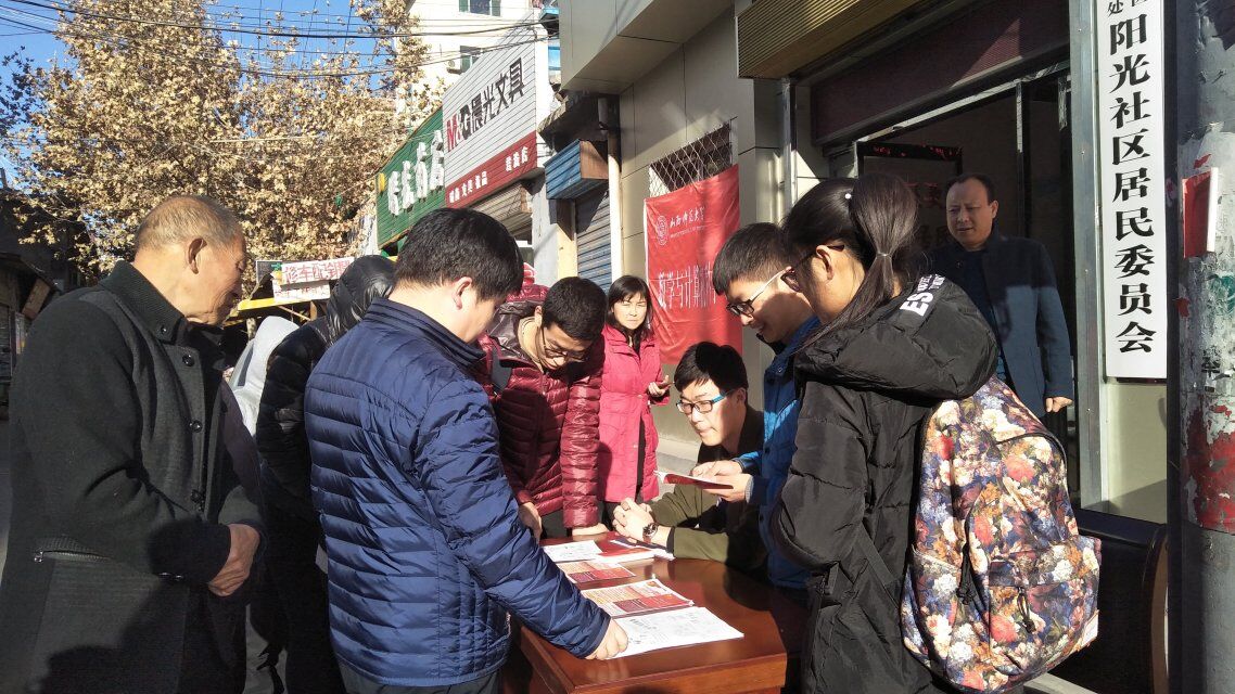 为深入学习宣传贯彻党的十九大精神,积极响应我省十九大精神进基层“百千万师生面对面行动”的号召,2017年12月10日下午,永利3044noc宣讲实践队赴水塔社区和鼓楼广场与市民一起学习、宣传和实践十九大精神。