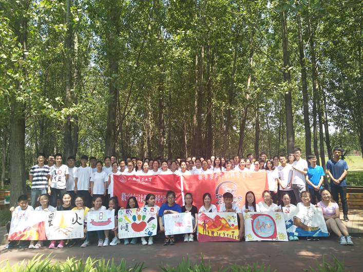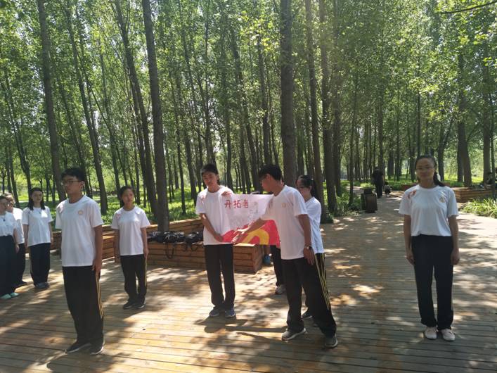 清晨六点钟,骨干培训班全员和公司入党积极分子整装待发,一场9.5公里的远征在公司素拓部负责人以及各组素拓师的带领下拉开序幕,这是一次心与心的碰撞,是一场笑与汗的远行。徒步前往涝洰河生态公园的一路上,队列整齐,没有一员掉队,尽管头顶骄阳,背负行囊,高举红旗,大家仍一路欢声笑语,意气风发,互相关怀。到达目的地稍作调整后,方队在公园内集合,八个小组分别就队名、队歌、队旗、队形四项展示他们在课余时间集思广益、组织排练的果实。各具特色的主题手绘队旗,嘹亮整齐的队歌,趣味横生的队形队列,无不展示着他们的青春活力和别样才能。开拓者、远征队、红星队、超越队、星火队、红色先锋队等队名让人过目难忘。《团结就是力量》、《黄河大合唱》、《歌唱祖国》等队歌以多元的形式诵唱,歌声在树林间传荡回响。紧紧围绕红色主题,党徽、箭头、三角形、祖国的花朵等队形被全新的演绎,抓住了路人的眼球,赢得了团队和围观群众的阵阵掌声。小组展示完毕后,其余七组成员进行举手投票,派各组代表进行优缺点对比分析,各组辅导员针对各个成员的表现给予意见,肯定大家一路上的点滴成长和进步,并严肃指出团队准备和展示环节中存在的问题。