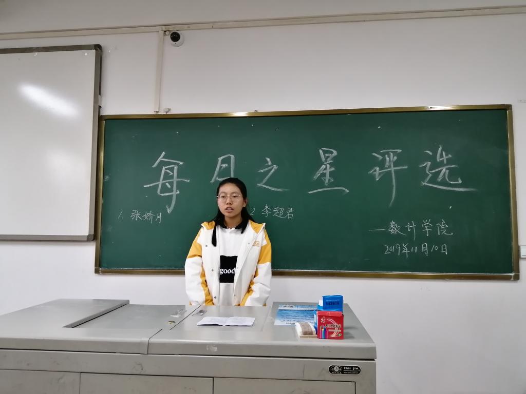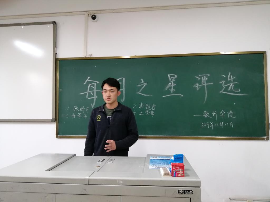 经各部门推荐、综合各项考核标准,最终推选出五位大一干事参加每月之星的选拔。首先,五位同学依次上场总结工作中的提升与不足,分享了加入员工会以来的感悟,表示今后将以更加饱满的热情投入到员工工作中去,积极配合兄弟部门的工作,为实现数计梦而贡献力量。经现场投票环节后,素质拓展部王睿豪荣获永利3044noc团委员工会十月份的“每月之星”。最后,员工会主席赵佳进行总结发言,对近期各部门有序推进各项工作提出了表扬,同时强调员工会与各班级之间应共谋发展思路,鼓励各班同学对员工会工作提出宝贵建议。