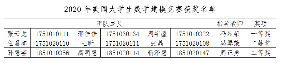 近日,2020年美国老员工数学建模竞赛(MCM/ICM)成绩揭晓,公司组建8支参赛队伍,斩获一等奖(Meritorious Winner)1项,二等奖(Honorable Mention)2项。