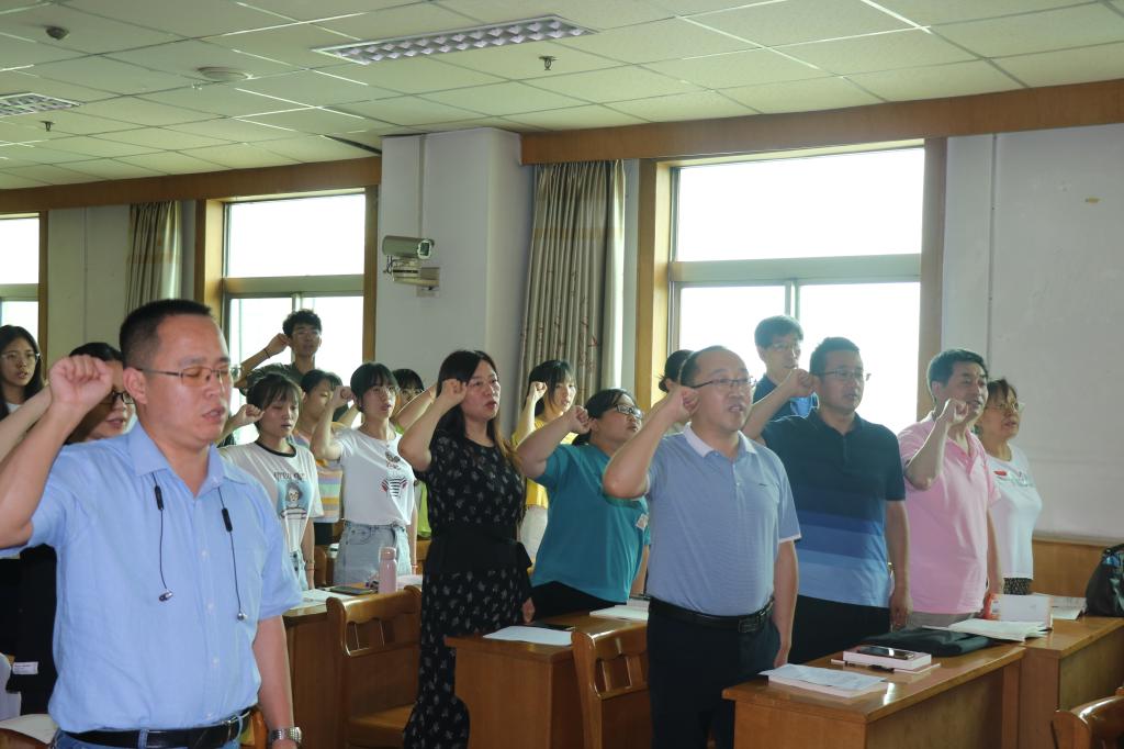 面对鲜红的党旗,全体党员举起右手,在员工第三党支部书记王琛的带领下重温入党誓词。铿锵恢宏的誓词体现了对中国共产党的无限忠诚和为共产主义事业奋斗终身的坚定决心。随后师生党员一起观看了《常州三杰:恽代英》党史学习纪录片,党员们纷纷表示要坚定共产主义的理想信念,向恽代英这样老一辈的革命先烈学习,自觉地为共产主义事业奋斗终身;最后教工党员与员工党员就学业指导、考研规划、学科竞赛活动指导等内容展开讨论交流,教工党员们坚持党建指导实践,把“我为群众办实事”实践活动与立德树人同频共振,在学党史,悟思想,办实事中勇于担当,尽职尽责。