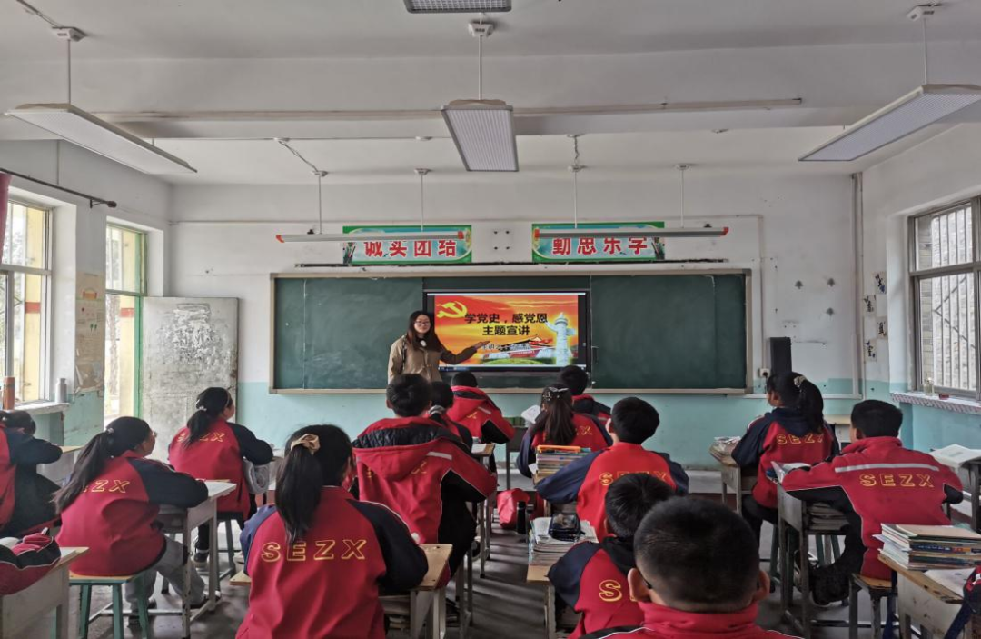 1803班杨晶晶在临汾市吉县桑峨中学面向初二员工进行了“学党史,感党恩”的主题宣讲,本次宣讲是为了让中员工认真学习党的百年历史和党的基本理论,并结合他们现在历史学习的知识及现阶段享受的教育优惠政策,深刻理解党恩及学习党史的意义,鼓励中员工树立正确的世界观、人生观和价值观,通过自己的努力,为祖国的发展做出贡献。