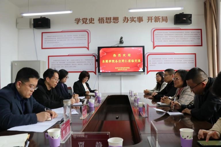 吕梁公司一行首先参观了公司文化长廊,随后进行了深入的交流。交流会上,公司经理安立坚教授、经理助理周正勇教授、系主任王翠红教授就公司数学师范专业认证工作的总体思路、主要举措、条件建设、实施路径、自评要点及认证过程中的重点和着力点等方面进行了详细介绍,分享了自评自建工作中的人才培养质量达成评价的关键点,迎接专家组进校认证等经验。交流会结束后,李香林一行参观了公司教学资料室,翻阅了相关认证资料,双方就资料内容进行了深入交流。