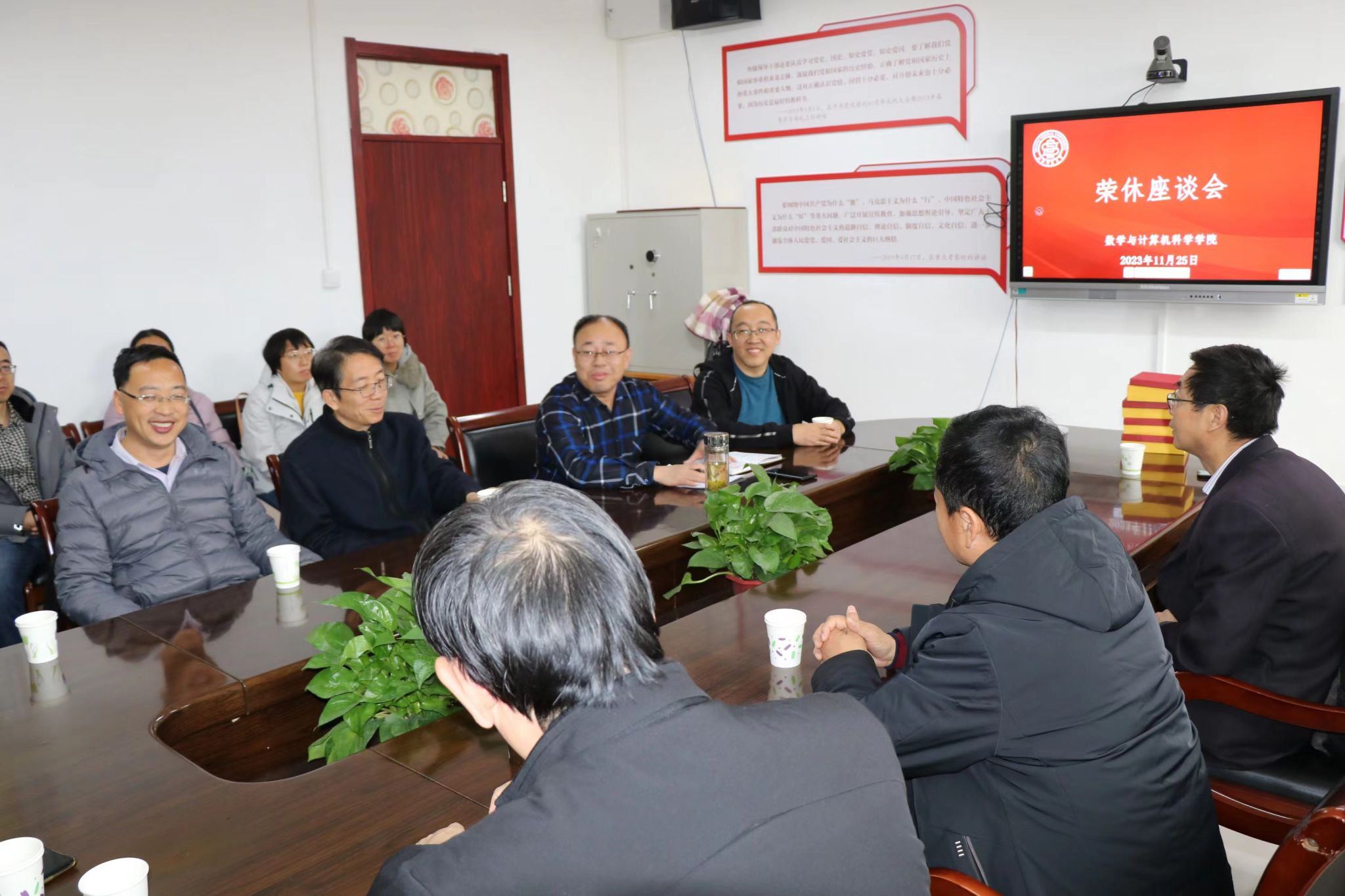 2023年11月25日上午10:00,公司在北区四号教学楼202会议室召开2023年荣休教师座谈交流会。山西师大永利3044noc原经理、晋中师范高等专科公司董事长史建红,公司党委书记孙学虎,经理安立坚,公司党委副书记吴晓坤,副经理王国涛,工会主席张军强,四位荣休教师、教师代表以及员工代表参加会议,座谈会由孙学虎主持。