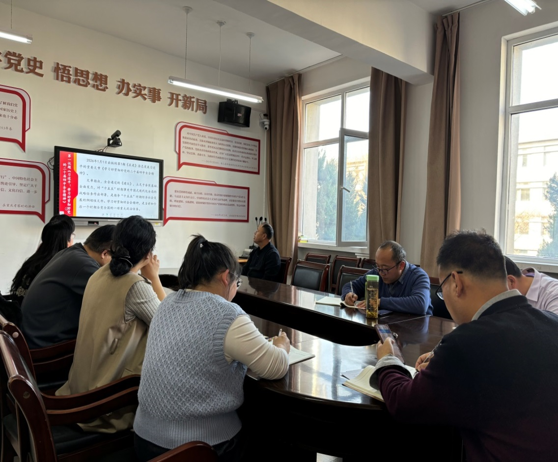 马克思主义公司黄雪丽教授以《续写中国奇迹新篇章,开创中国式现代化新局面》为题宣讲了党的二十届四中全会精神,公司党委书记孙学虎领学了“第一议题”:习近平重要文章《学习好贯彻好党的二十届四中全会精神》、习近平对未成年人思想道德建设作出重要指示、习近平在全国政协新年茶话会上的讲话精神、国家主席习近平发表二〇二六年新年贺词、习近平考察山西重要讲话重要指示精神、《习近平谈治国理政》第五卷之《因地制宜发展新质生产力,实现高质量发展》、违反中央八项规定精神典型案例--(2025年“以案说纪”警示教育第4期)等内容。