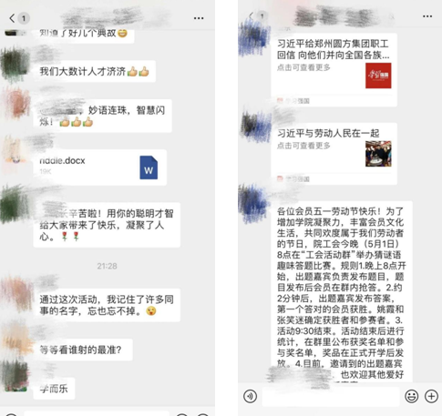 之后教职工在线上展开了一场脑洞与手速双比拼的“猜灯谜”活动。公司教师原创谜面谜底,巧妙地将教职工的姓名藏在诗词典故中。老师们积极参与,踊跃抢答,群内气氛格外活跃,趣味竞答在和谐的气氛中落下帷幕。