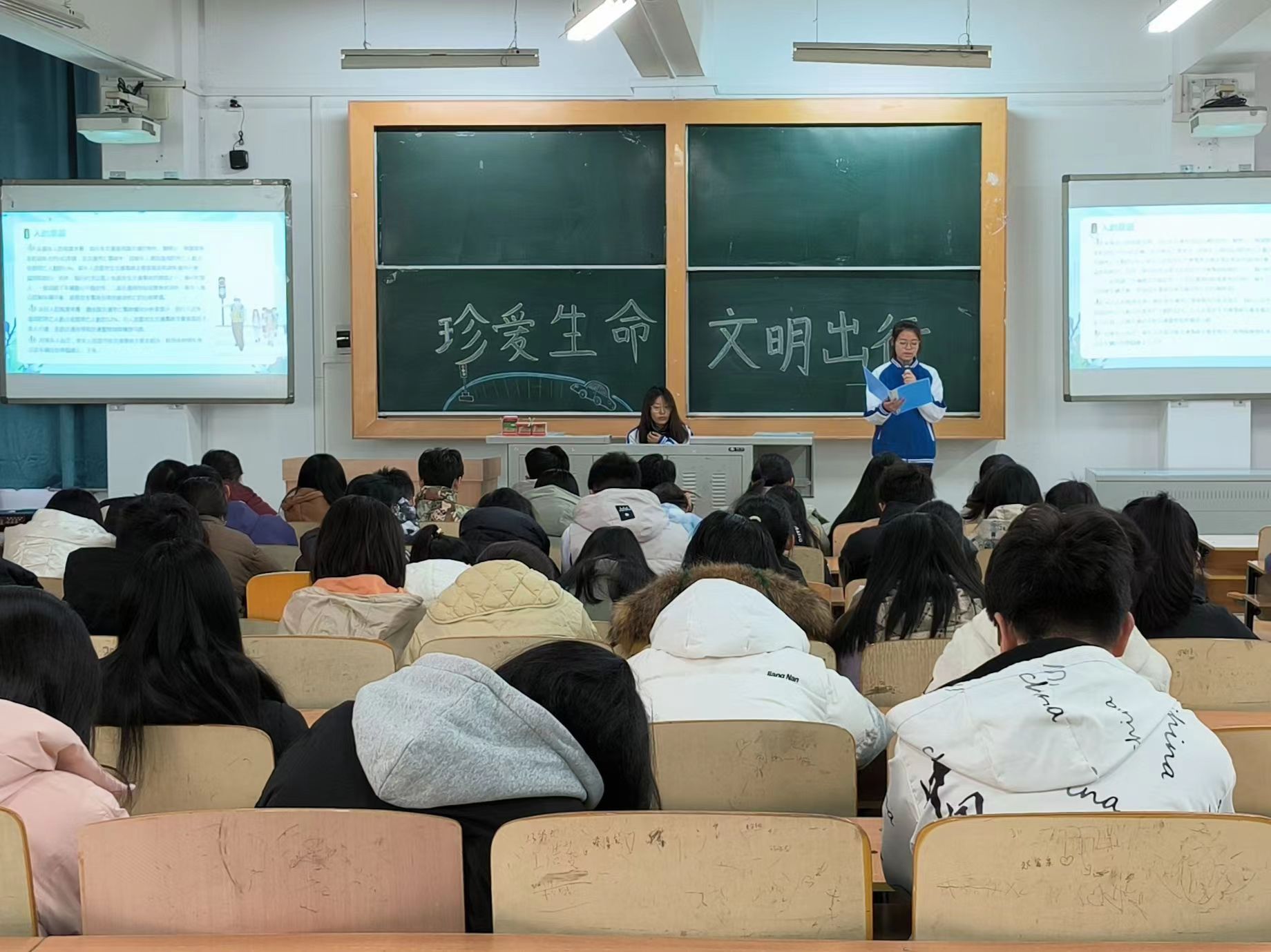 12月3日上午9时,公司于南区5309教室举办“珍爱生命,文明出行”宣讲会。22、23级各班班长、生活委员及各宿舍舍长参会。