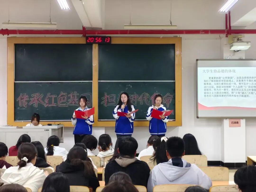 活动伊始,宣讲团成员以党史为核心指引,围绕思想成长展开分享:一方面号召同学们以党史为“指南针”,从校园小事、社会实践做起,树立长远眼光,勇担时代使命;另一方面以大一新生校园生活为切入点,通过对比今昔青年处境引出党史学习主题,提炼出“志存高远、脚踏实地、迎难而上”的青春“成长密码”,鼓励学子将个人理想融入党和国家事业,书写专属青春篇章。